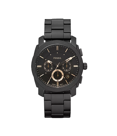 The Fossil Machine FS4682 is a stylish men’s chronograph watch with a bold, all‑black stainless steel build. It features a 42 mm black IP stainless steel case, a matching black bracelet (22 mm width), and a black dial with three subdials (chronograph) plus a date window. Powered by a quartz movement, it offers reliable, low‑maintenance timekeeping. It has a 5 ATM / 50 m water resistance rating, suitable for everyday wear (splash, rain) but not for diving.